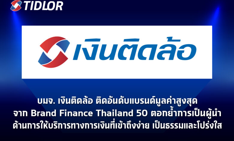 บริษัท เงินติดล้อ จำกัด (มหาชน) บริษัทในกลุ่ม Tidlor Holdings หรือ TIDLOR สร้างความภาคภูมิใจอีกครั้ง ด้วยการติดอันดับแบรนด์ไทยที่มีมูลค่าสูงที่สุดประจำปี 2568 จาก Brand Finance Thailand 50 ซึ่งเป็นสถาบันระดับโลกด้านการประเมินมูลค่าแบรนด์ โดยได้รับการจัดอันดับที่ 24 จาก 50 แบรนด์ไทยที่มีมูลค่าสูงสุด ด้วยมูลค่าแบรนด์ 400 ล้านเหรียญสหรัฐฯ หรือราว 13,000 ล้านบาท และคะแนนความแข็งแกร่งของแบรนด์ (Brand Strength Index หรือ BSI) ที่ 81.5 จาก 100 อยู่ในระดับ AAA- และยังนับว่ามีมูลค่าสูงที่สุดในกลุ่มธุรกิจ Non-Bank อีกด้วย ตอกย้ำบทบาทในฐานะผู้นำด้านการให้บริการทางการเงินที่เข้าถึงง่าย เป็นธรรมและโปร่งใส (The Leading Financial Inclusion Service Provider)