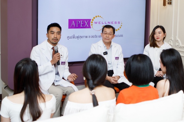 ด้านแพทย์หญิงธนัชพร ลาภาธารกุล แพทย์เวชศาสตร์ชะลอวัยและฟื้นฟูสุขภาพ APEX Wellness กล่าวว่า “ ประเทศไทยกำลังเข้าสู่สังคมผู้สูงอายุอย่างเต็มตัว ดังนั้นอายุเฉลี่ยของประชากรก็จะเพิ่มขึ้นเช่นกัน การที่มีอายุยืนยาวอย่างมีคุณภาพคือสิ่งที่ทุกคนล้วนต้องเริ่มวางแผนตั้งแต่วันนี้ โดยเฉพาะสภาพเศรษฐกิจและสังคมในปัจจุบัน ทำให้จำนวนผู้ป่วยที่ถูกวินิจฉัยว่าเป็นโรคอ้วนนั้นเพิ่มสูงขึ้น ซึ่งสิ่งที่เรากังวลจากโรคอ้วน คือโรคร่วมอื่นๆ ที่จะตามมาหลังจากนั้นมากกว่า