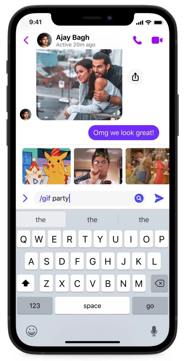 - /gif: เปิดประสบการณ์การค้นหาภาพเคลื่อนไหวแบบ gif ทันที ซึ่งผู้ใช้สามารถเลือกและส่ง gif ได้ (จะเปิดให้ใช้สำหรับ iOS เร็วๆ นี้)