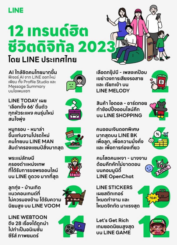 ล่าสุด LINE ประเทศไทยพาไปส่อง 12 เทรนด์ฮิตชีวิตดิจิทัลปี 2023 กันแบบครบจบในที่เดียวประกอบไปด้วย