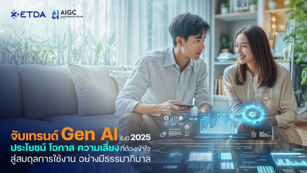 ดังนั้น เพื่อให้ทุกคนได้ทำความเข้าใจเทคโนโลยี Gen AI ให้ลึกยิ่งขึ้น สำนักงานพัฒนาธุรกรรมทางอิเล็กทรอนิกส์ (ETDA) โดย ศูนย์ธรรมาภิบาลปัญญาประดิษฐ์ หรือ ศูนย์ AIGC จึงไม่พลาดที่จะพาทุกคนร่วมเปิดมุมมองใหม่ จับเทรนด์ Gen AI รับปี 2025 เพื่อให้เข้าถึงประโยชน์ โอกาส ตลอดจนความเสี่ยงของการใช้ Gen AI ที่ต้องเข้าใจ สู่การสร้างสมดุลการใช้งานที่ยั่งยืนอย่างมีธรรมาภิบาล ผ่านการถอดบทเรียนไปกับผู้เชี่ยวชาญหลากหลายด้านเกี่ยวกับ AI ที่มาร่วมแชร์มุมมอง ความรู้ในงาน AI Governance Webinar 2024 : จับเทรนด์ Gen AI พลิกโฉมทุกภาคส่วน….ใช้อย่างไรให้มีธรรมาภิบาล? ที่เพิ่งผ่านไปเมื่อเร็วๆ นี้