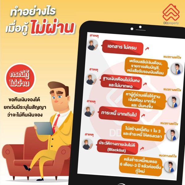ข้อมูลจากแบบสอบถามความคิดเห็นของผู้บริโภคที่มีต่อตลาดที่อยู่อาศัย DDproperty’s Thailand Consumer Sentiment Study รอบล่าสุด เผยว่า อุปสรรคใหญ่เมื่อยื่นขอสินเชื่อเพื่อที่อยู่อาศัยมาจากรายได้และอาชีพที่ไม่มั่นคงถึง 59% ตามมาด้วยมีประวัติทางการเงินที่ไม่ดี (46%) และไม่มีเอกสารประกอบที่เพียงพอ (38%) สะท้อนให้เห็นว่าปัญหาการเงินมีความสำคัญอันดับต้น ๆ ซึ่งกลายเป็นความกังวลและพัฒนาต่อเนื่องไปเป็นความเข้าใจที่คลาดเคลื่อนว่า การมีประวัติหนี้สินแสดงอยู่บนเครดิตบูโรจะทำให้ถูกปฏิเสธสินเชื่อหรือยื่นกู้ไม่ผ่าน ซึ่งแท้จริงแล้วนี่เป็นความเข้าใจผิดที่สะสมมานาน สร้างความกังวลใจเกินกว่าเหตุและทำให้คนที่ต้องการมีบ้านจำนวนมากพลาดโอกาสเป็นเจ้าของที่อยู่อาศัยในช่วงเวลาที่เหมาะสมตามไปด้วย