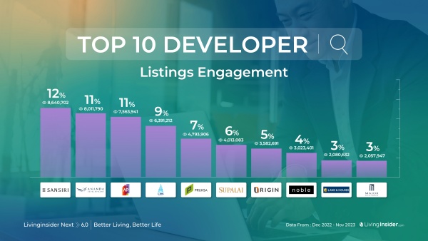 ส่วนการค้นหาจากแบรนด์อสังหาฯ สำหรับในปีที่ผ่าน แบรนด์ที่มีผู้เข้าชมมากที่สุด ก็คือ แสนสิริ โดยกระโดดจากลำดับ 4 ในปีก่อน ขึ้นมาเป็นลำดับ 1 ในปีนี้ ตามมาด้วย อนันดา AP LPN พฤกษา ตามลำดับ”