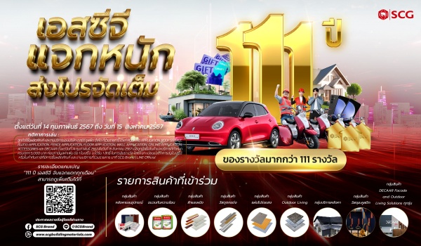 เอสซีจี ผู้นำด้านนวัตกรรมวัสดุก่อสร้างครบวงจร เดินหน้าส่งแคมเปญใหญ่แห่งปี “111 ปี เอสซีจี จับแจกแตกทุกเดือน” ในโอกาสฉลองครบรอบ 111 ปี เอสซีจี จับแจกทั่วไทยแจกใหญ่ทุกภาคทั่วประเทศ เริ่ม! 14 กุมภาพันธ์ 2567 – 15 สิงหาคม 2567 ของรางวัลมากกว่า 111 รางวัล รวมมูลค่ากว่า 1.5 ล้านบาท