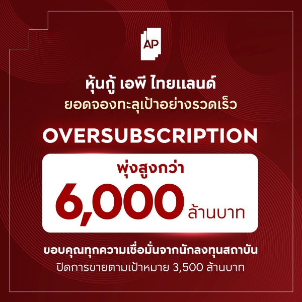 เอพี ไทยแลนด์ โชว์แกร่งรับต้นปี 2569 ปิดจองหุ้นกู้ Oversubscription ทะลุ 6,000 ล้านบาท