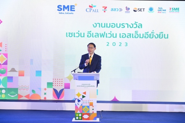 นายยุทธศักดิ์ ภูมิสุรกุล ประธานเจ้าหน้าที่บริหารบริษัท ซีพี ออลล์ จำกัด (มหาชน) ผู้บริหารเซเว่น อีเลฟเว่น และเซเว่น เดลิเวอรี่ กล่าวว่า เซเว่น อีเลฟเว่น พร้อมด้วย 3 หน่วยงานพันธมิ ตรสำคัญ ได้แก่ กรมส่งเสริมอุตสาหกรรม สำนักงานส่งเสริมวิสาหกิ จขนาดกลางและขนาดย่อม (สสว.) และตลาดหลักทรัพย์ไลฟ์เอ็กซ์เช้ นจ์ (LiVEx) จัดงานมอบรางวัล “เซเว่น อีเลฟเว่น เอสเอ็มอียั่งยืน 2023” ต่อเนื่ องเป็นปีที่ 7 เพื่อเชิดชู SME ที่มีศักยภาพและสร้างแรงบั นดาลใจให้กับ SME ทุกกลุ่มสินค้ า ในการเดินหน้าพัฒนาธุรกิ จและยกระดับคุณภาพสินค้ าของตนเอง เพื่อสร้างการเติบโตอย่างยั่งยื นในอนาคต โดยทางคณะผู้จัดงานได้ร่วมกันพิ จารณา SME ที่โดดเด่นผ่านผลงาน 3 ปีล่าสุด เพื่อเฟ้นหา SME ศักยภาพ รับรางวัลจำนวน 26 ราย จากประเภทรางวัลทั้งสิ้น 10 ประเภท