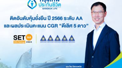 ‘กรุงเทพประกันชีวิต’ ได้รับการประเมินหุ้นยั่งยืน ระดับ AA ประจำปี 2566