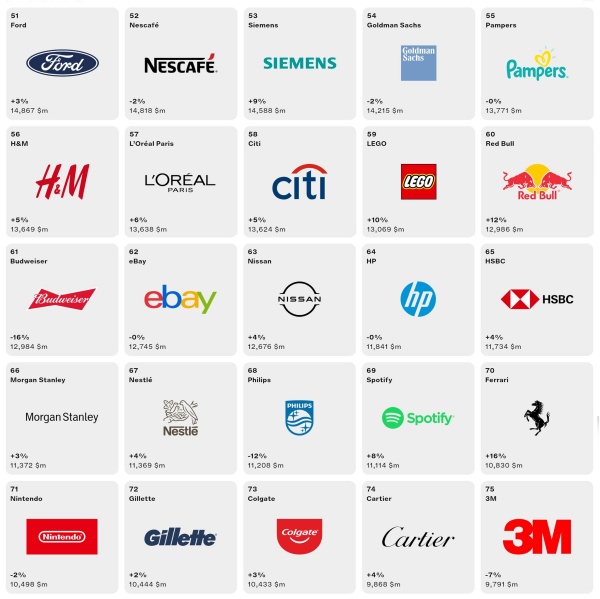 ขณะที่แบรนด์ Samsung จากเอเชียยังคงรักษาผลงานไว้ได้อย่างยอดเยี่ยม สามารถรักษาอันดับติดกลุ่ม Top 5 ด้วยมูลค่าแบรนด์ที่ 91,407 ล้านเหรียญสหรัฐ เติบโต 4%